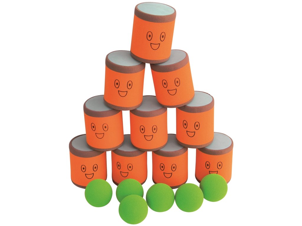 Tato zábavná sada na házení obsahuje 10 plechovek, 6 míčků a praktický úložný sáček. Pro hraní uvnitř i venku.