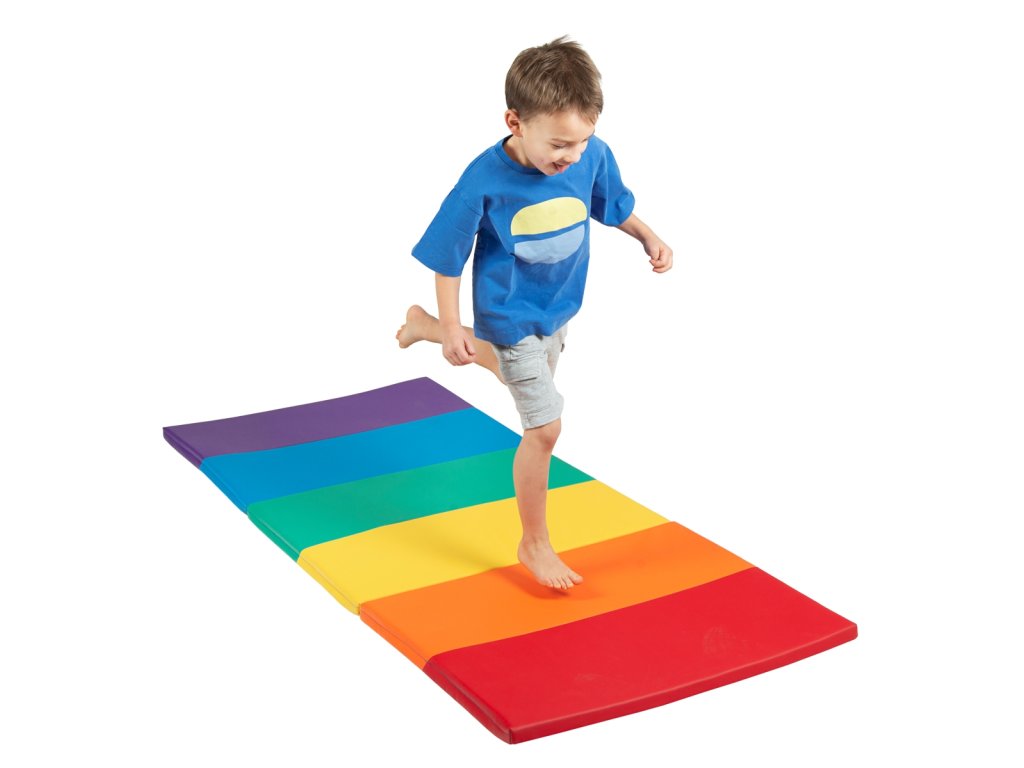 Šest zářivých duhových pruhů přitahuje pozornost a podporuje kreativní hru a zároveň slouží jako vizuální značky pro skákání nebo házení. Skládací design usnadňuje skladování a přepravu, ideální pro školy, školky a hřiště.