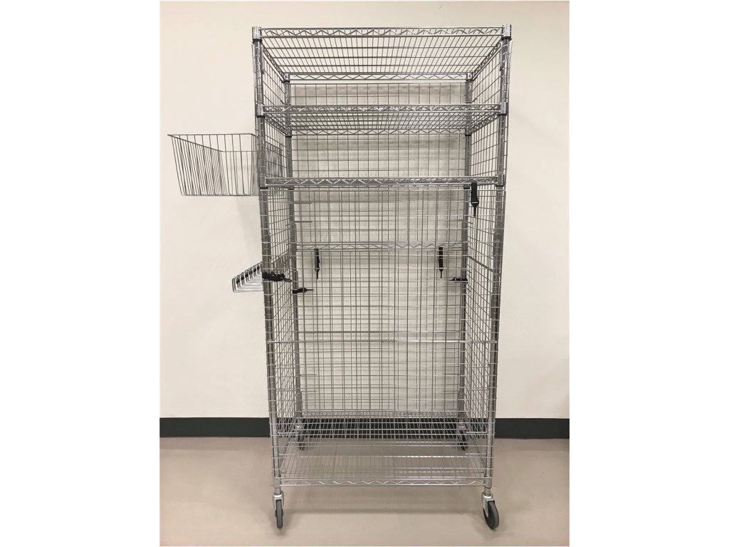 Toto skladovací centrum je rozděleno na 3 části s jedním velkým kontejnerem o výšce 1,22 m a nad tímto kontejnerem jsou dvě výškově nastavitelné police. Závěsná úložná sada není součástí balení. Rozměr: 91,5x61x183cm. Maximální zatížení: 300 kg.